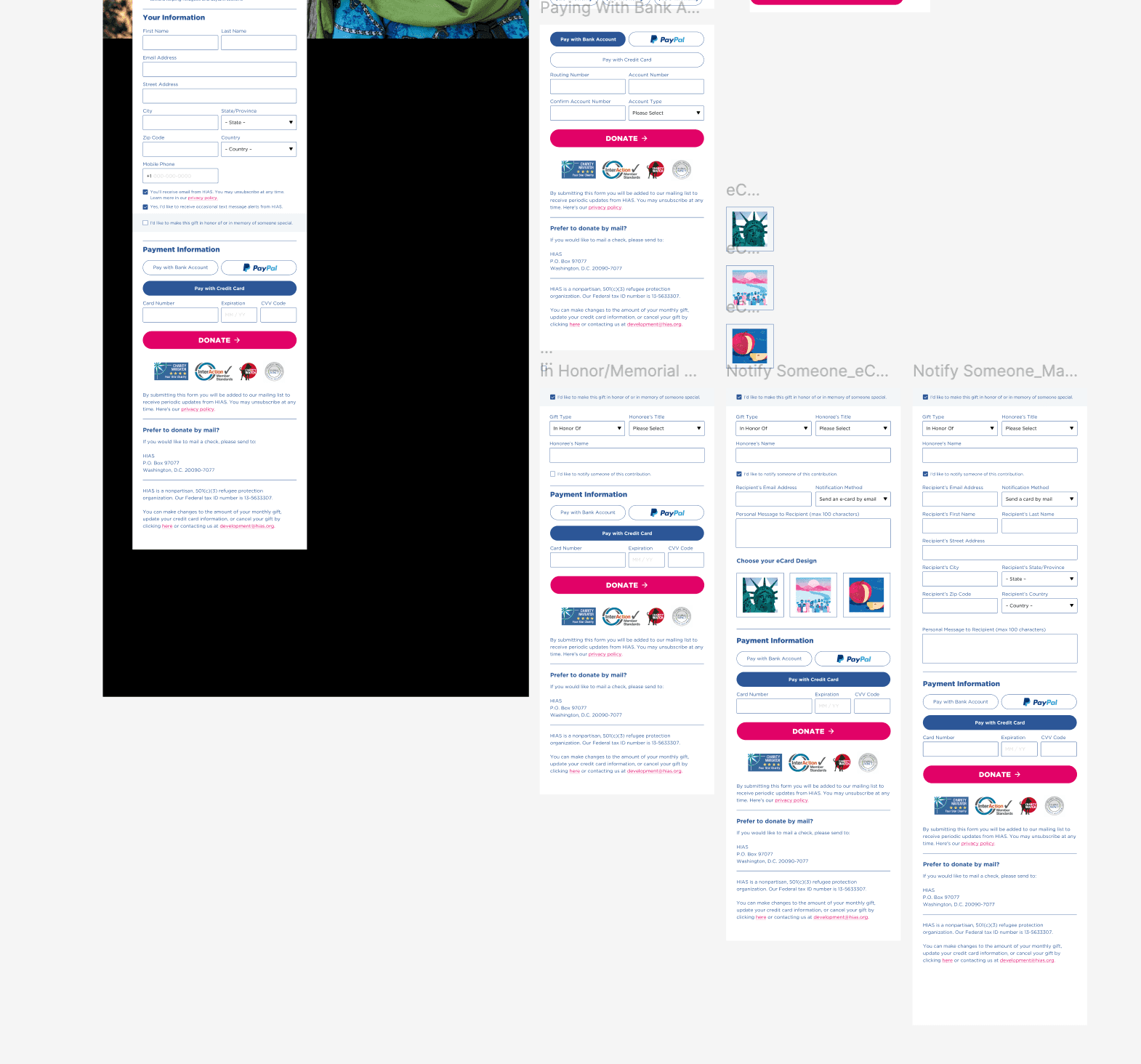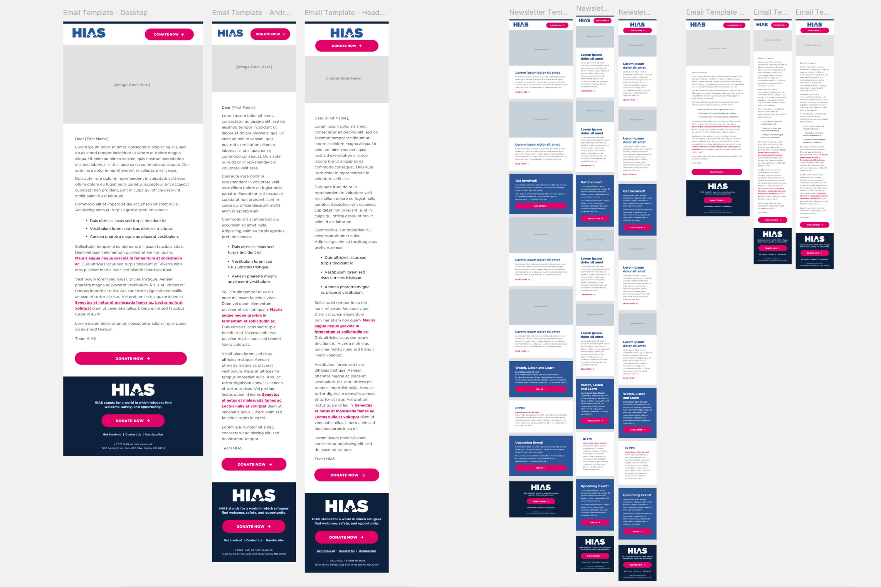 HIAS wanted to restructure their all-year around donation page, refresh their Newsletter and Email template with simple color blocking and full bleed images. I was assigned to design this package under the services of M+R. Note: Design changes may have been made since this was launched in 2021.